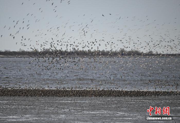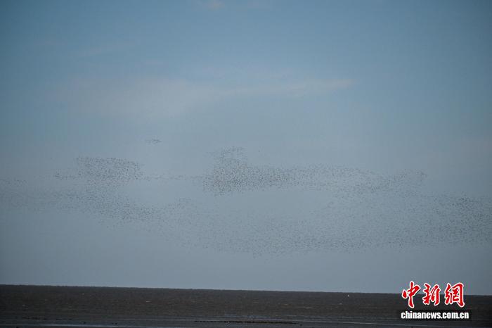 4月6日,辽宁丹东鸭绿江心留鸟休憩天留鸟翔散,构成“鸟浪”景不雅,吸收旅客前去鉴赏。图为辽宁丹东鸭绿江心留鸟休憩天的“鸟浪”。中新社记者 于陆地 摄