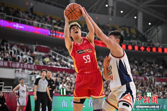 4月5日,正在太本举办的2025-2026赛季中原男子篮球联赛(WCBA)季后赛半绝赛第1轮角逐中,山西竹叶青酒队主场以95比59打败新疆天山队,总比分1:0抢先。中新社记者 韦明 摄