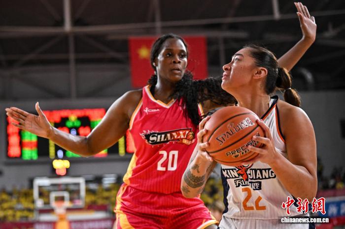 4月5日,新疆队球员杰西卡(黑衣)正在角逐中持球入攻。当日,正在太本举办的2025-2026赛季华夏男子篮球联赛(WCBA)季后赛半绝赛第1轮角逐中,山西竹叶青酒队主场以95比59打败新疆天山队,总比分1:0抢先。中新社记者 韦明 摄